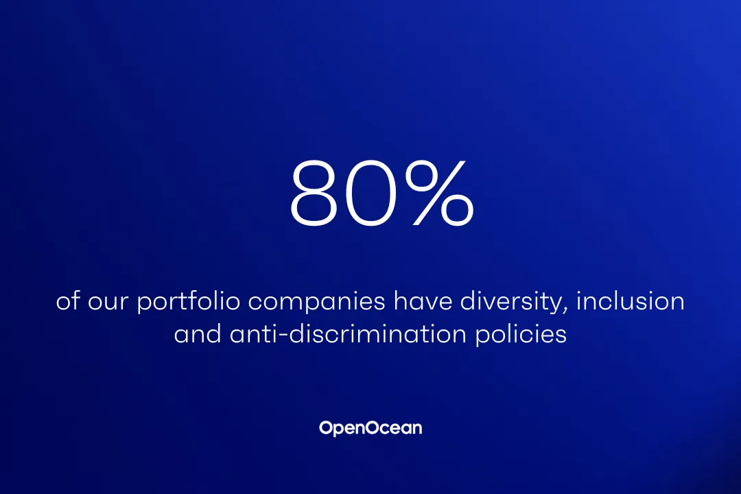 Diversity metrics among our portfolio companies remained strong and at the same level as in previous years. Companies report having an average of 11 nationalities, with the highest number being a whopping 40 nationalities. We saw a significant increase in companies with diversity, inclusion, and anti-discrimination policies set up; now, four in five companies report having one.